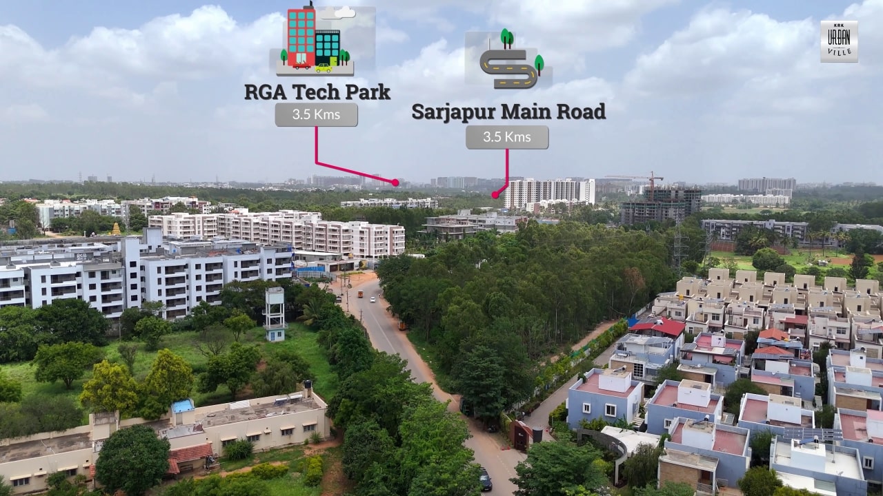 KRK Urban Ville features excellent connectivity to major IT Hubs of Sarjapur Road, ORR, Whitefield & Electronic City such as RGA Tech Park - 4 Kms, Prestige Tech Park- 4 Kms, Cessna Business Park - 4 Kms, Wipro SEZ Sarjapura - 4 Kms, RMZ Ecospace - 5 Kms, Embassy Tech Village - 4 Kms etc. There are several reputed educational institutions within 2 Kms radius of the project such as Chrysalis High School ICSE, The Cambridge International School, Krupanidhi College – Gunjur Campus, Basil Woods International School etc.